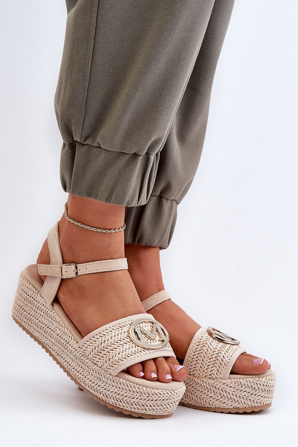 These stylish women's sandals look very glamorous thanks to the braided design, which adds to their unique appeal. Set on a platform along with an anchor, they provide comfort and stability while wearing. Gold embellishment adds elegance and class to any summer styling. Fastened with an adjustable strap with buckle, they are not only fashionable, but also practical and comfortable for warm days.