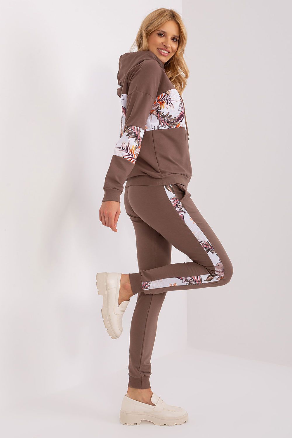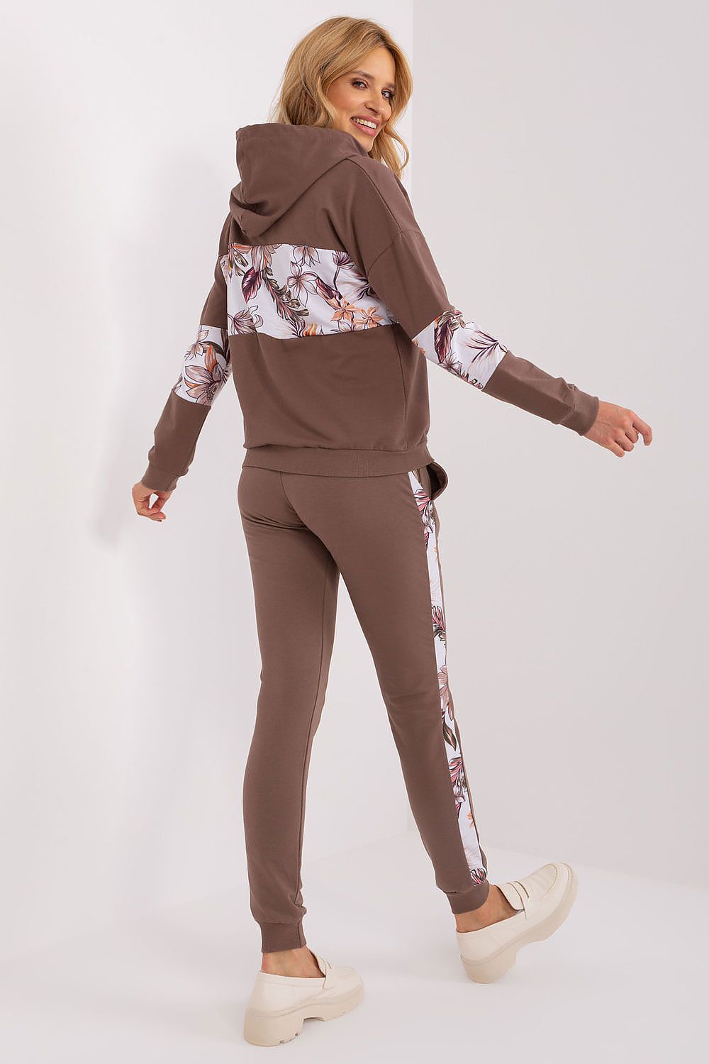 This tracksuit set is a combination of excellent comfort and original style. This set is the quintessence of casualness and ease, an ideal choice for lovers of casual, casual style. The long-sleeve sweatshirt and hoodie will work well in everyday situations, providing comfort all day long. Original floral fabric inserts add a unique character to the tracksuit set. It is a delicate detail that gives the whole set a fresh and feminine charm. The dominant cotton material guarantees a feeling of softness and airiness. This is an ideal choice for those who appreciate natural fibers. The welts on the legs of the pants are not only a fashionable detail, but also a practical solution. They add lightness and casualness, while keeping the pants in place. The high rise of the pants not only adds modernity to the styling, but also ensures comfortable wearing. This is the perfect solution for those who appreciate stability and comfort. Practical side pockets are the perfect place to stash small items or warm your hands on colder days. Elastic binding at the waist allows you to adjust the pants to individual preferences, guaranteeing a perfect fit. This tracksuit set is an option for women who want to combine comfort with fashion expression. It will work well both when relaxing at home and on a walk or meeting with friends, adding a unique character to any styling.
