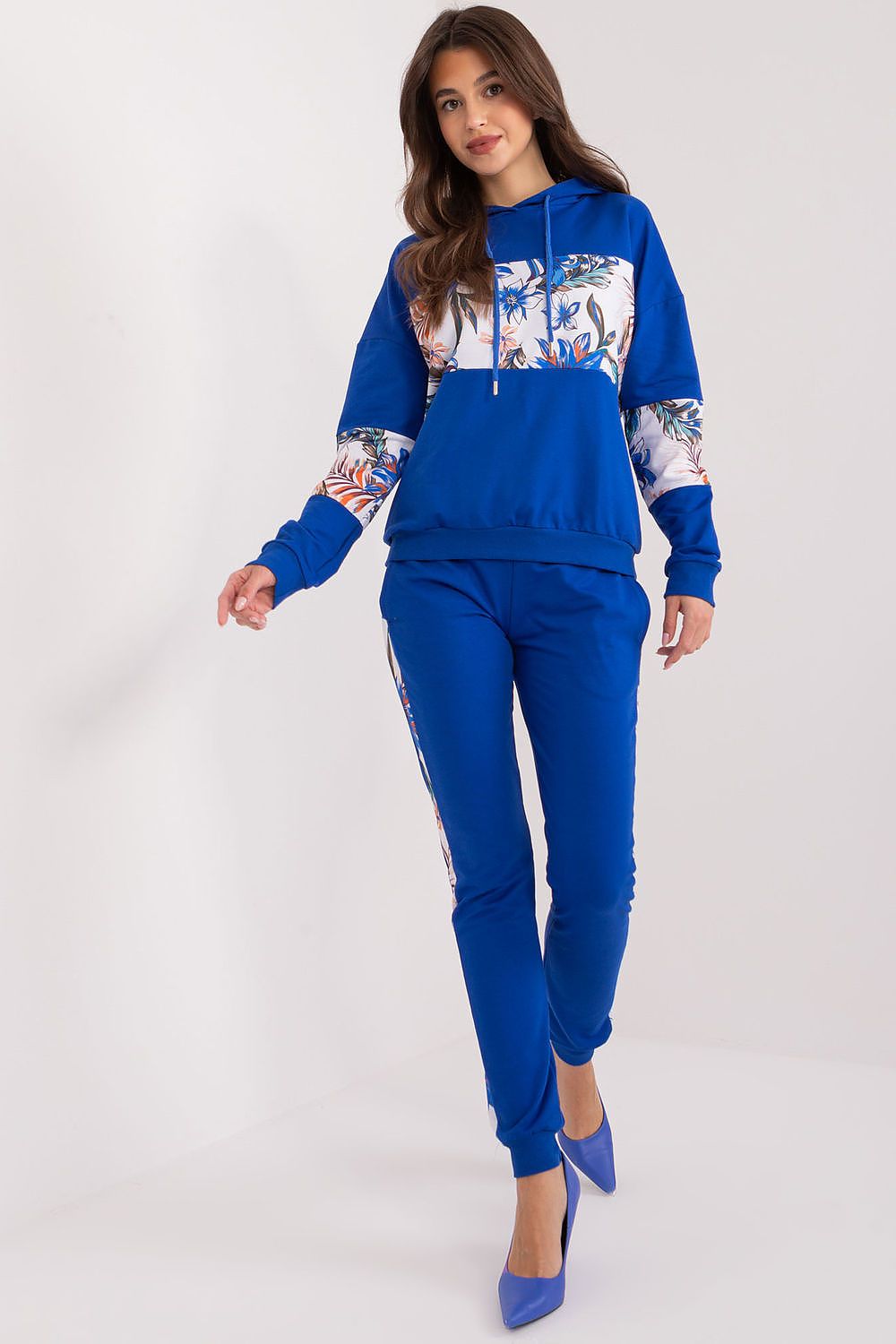 This tracksuit set is a combination of excellent comfort and original style. This set is the quintessence of casualness and ease, an ideal choice for lovers of casual, casual style. The long-sleeve sweatshirt and hoodie will work well in everyday situations, providing comfort all day long. Original floral fabric inserts add a unique character to the tracksuit set. It is a delicate detail that gives the whole set a fresh and feminine charm. The dominant cotton material guarantees a feeling of softness and airiness. This is an ideal choice for those who appreciate natural fibers. The welts on the legs of the pants are not only a fashionable detail, but also a practical solution. They add lightness and casualness, while keeping the pants in place. The high rise of the pants not only adds modernity to the styling, but also ensures comfortable wearing. This is the perfect solution for those who appreciate stability and comfort. Practical side pockets are the perfect place to stash small items or warm your hands on colder days. Elastic binding at the waist allows you to adjust the pants to individual preferences, guaranteeing a perfect fit. This tracksuit set is an option for women who want to combine comfort with fashion expression. It will work well both when relaxing at home and on a walk or meeting with friends, adding a unique character to any styling.