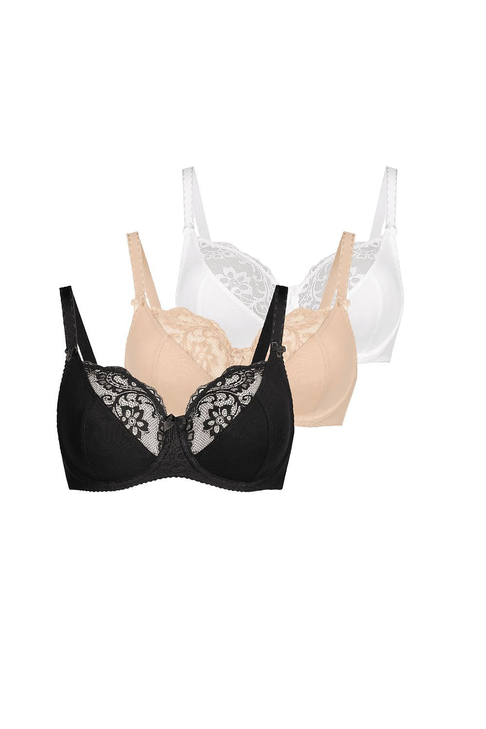 Cotton bra. The underwired soft bra is made of high-quality materials. The upper part of the cup is finished with delicate lace with a beautiful floral motif. The bra has vertical cuts that lift the breasts up and horizontal cuts that push the breasts well inward and thus expose them nicely. The cups are deep and cover the entire breasts without cutting through them. The bra is higher built up on the side, which helps cover a woman's imperfections. The width of the straps is adjusted to the size. The straps are decorated with a delicate bow and are adjustable. The bra is very comfortable and suitable for everyday use, so every woman should have it in her closet.