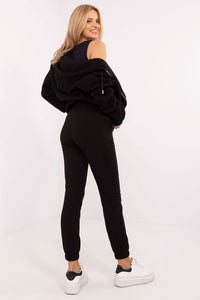 Women's casual sweatpants, perfect for everyday activities and relaxation. Made of a pleasant to the touch blend of cotton and elastane, providing comfort, flexibility, and material durability. The pants have a high waist and a tie at the waist, allowing for a perfect fit to the silhouette. Cuffs on the legs give them a modern look and additionally increase comfort. Side slip pockets are practical and allow for storing small items. The smooth fabric is complemented by subtle embroidery on the front, adding style and uniqueness. These are the perfect pants for women who value comfort, functionality, and trendy design all in one!