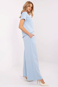 Stylish palazzo-style sweatpants, combining comfort and elegance in everyday stylizations. Made of a soft blend of viscose, polyester, and elastane, they provide comfort and freedom of movement. The smooth fabric and wide legs give them a fashionable, slightly oversized character. The high waist with elastic band ensures a perfect fit to the silhouette, and decorative pleats on the front add a unique expression to them. A model without fastening, equipped with practical side pockets. Perfect for everyday wear, both for sporty and more elegant combinations.